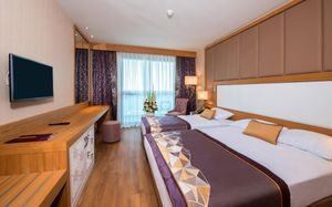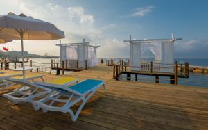 Отель Sirius Deluxe расположен в курортном районе Тюрклер. К услугам гостей открытый и крытый бассейны, а также частный пляж. Около отеля и в окрестностях можно заняться различными видами активного отдыха, в том числе покататься на 2 горках в бассейне, поиграть в настольный теннис или дартс, заняться греблей на каноэ. На территории отеля работают многочисленные магазины кожаных и ювелирных изделий, а также часов.