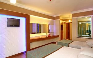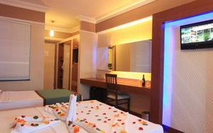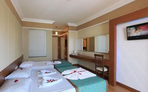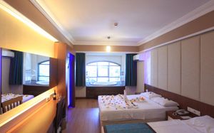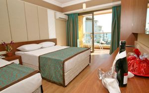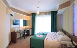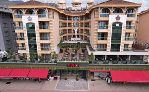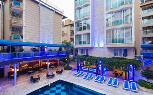 Спа-отель Tac Premier работает по системе "все включено" и находится всего в 50 метрах от знаменитого пляжа Клеопатры. К услугам гостей превосходный спа-центр и множество развлечений для всей семьи. Вы сможете полностью расслабится в спа-центре, поплавать в крытом и открытом бассейнах, а также бесплатно посетить большой тренажерный зал. На территории отеля находятся различные магазины, закусочная Burger King, парикмахерская, салон татуировок и пирсинга, магазин очков, фотомастерская и многое другое. В пакет обслуживания по системе "все включено" входит следующее: завтрак "шведский стол" под открытым небом, поздний завтрак, обед "шведский стол" под открытым небом, закуски (подаются по определенному меню), печенье/торты и чай в соответствующее время дня, мороженое, ужин "шведский стол" под открытым небом и "вечерние супы". Для тех, кто не заказывал питание по системе "все включено", работает превосходный ресторан с обслуживанием по меню. Каждый день гостям предложат заняться такими видами активного отдыха, как водное поло, водная гимнастика, пляжный волейбол и дартс.