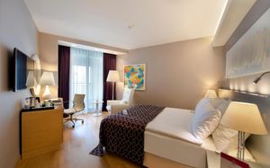 С балконов номеров отеля Akra открывается вид на Средиземное море или на горный хребет Тавр. Интерьеры оформлены в современном стиле; в числе стандартных удобств — бесплатный Wi-Fi и телевизор с плоским экраном, подключенный к спутниковым каналам.