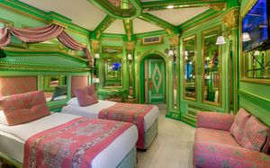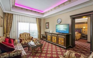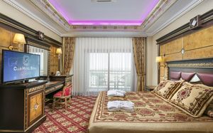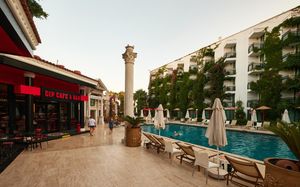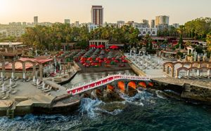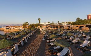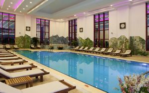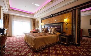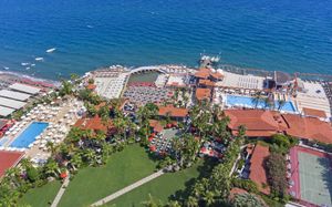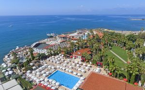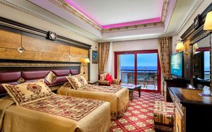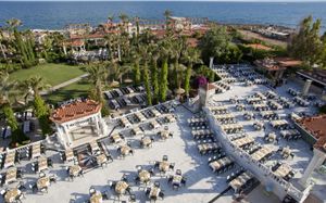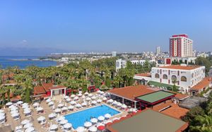 Club Hotel Sera is located in Antalya, just seconds away from sandy Lara Beach. It offers luxurious rooms and has a spa, fitness centre and several swimming pools. Free WiFi is available on lobby area. All rooms at the 5-star Club Hotel Sera are well-equipped with central air conditioning and satellite TV, and the interior design reflects the opulence of Ottoman palaces. Club Hotel Sera offers body and face treatments at the full service spa and the Turkish bath. The fitness centre offers high-tech equipment. Children can have fun at the mini club, which provides a supervised environment with animation and games throughout the day. Guests can enjoy a variety of international and Turkish cuisine in Club Hotel Sera’s restaurant, while admiring the panoramic views of the Turkish Riviera. Antalya Airport is only a 15-minute drive from Club Hotel Sera.
