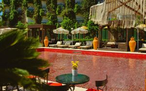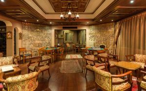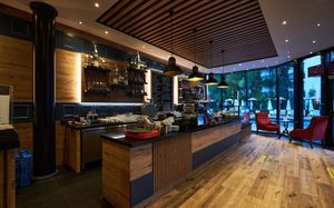 Очень приятная атмосфера! Территория зелёная, поют птички. Отель - бывшее казино, повсюду прослеживается тематика игр. Вежливый и внимательный персонал. На обеде в ресторане исполняет музыку пианист, великолепно обедать под прекрасную музыку! Вкусная кухня, напитки, коктейли. Бармены готовят отличные коктейли, хочу отметить Тимура, очень вежливый и внимательный, и коктейли - супер! Зона спа - тоже отличная, джакузи, хаммам, сауна, бассейн, есть раздевалка со шкафчиками. Стоит еще раз посетить отель в летний сезон, когда работают рестораны на улице. Думаю, я буду в восторге!