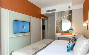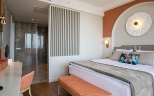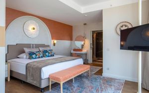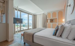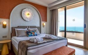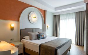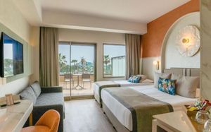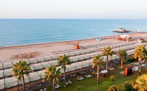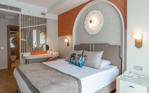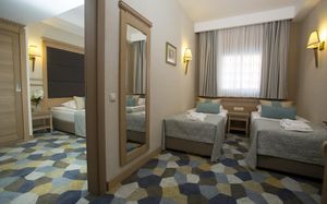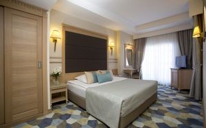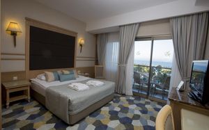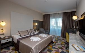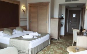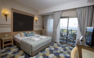 Пляж отличный, галька, заход в море удобный, ногам не больно потому что камешки не острые, питание хорошее, голодными не останутся даже привередливые ничего не кушающие дети, есть всё ( вафли, пицца, донер, бургеры, мороженное, фрукты, оладьи с нутелой), если как я боитесь что нечем будет кормить детей не переживайте, +всё вкусно, даже крылышки КФС есть. Расположение отличное, первая береговая, если выйти из отеля попадёте на главную дорогу, остановки автобусные и куча магазинов рядом, магазины как сувенирные так и одежда, сумки, экскурсии итд. Отель чистый, отдыхают иностранцы, немцы, итальянцы… Пьяных шатающихся, матерящихся ни разу за весь отдых не видела. Всё культурно, все цивильно, в основном если русские семьи, то с детьми, в общем контингент отличный👍🏻. Номера не ушатанные, чистенько, всё что нужно есть. Утюга нету, но если попросить наверное дадут, нам не понадобился. Уборка ежедневная, но мы в этом плане не прихотливые, мы приехали отдыхать, а не следить за тем как чисто убрали в номере. Есть все принадлежности для инвалидов, вплоть до колясок для спуска на воду в бассейне, это конечно круто. Сервис отличный. Шезлонгов хватало всегда, мест на ужине тоже. Детская комната хорошая, с детьми играют, развлекают, анимация на бассейне и в вечернее время есть, но мы не любители, поэтому не могу сказать плохо или хорошо. Слышимость в номерах отличная, если в каридоре разговаривают, то вы поймёте каждое слово если это ваш язык 😜! В целом отелем довольны, если возвращаться в турцию, то только сюда!!!