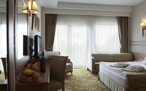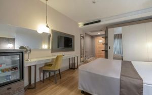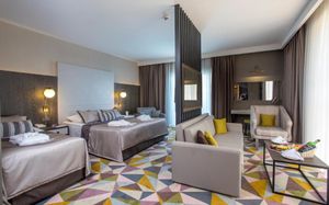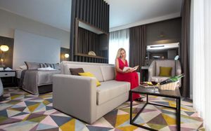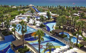 Приморский спа-отель Fame Residence Lara расположен на Средиземноморском побережье. К услугам гостей собственный пляж, отмеченный Голубым флагом, спа-центр и большой открытый бассейн с водными горками. Отель предоставляет для проживания роскошно оформленные, современные номера. В местах общего пользования доступен бесплатный Wi-Fi. Все комфортабельные номера курортного отеля Fame Residence Lara декорированы в мягких тонах и оснащены кондиционером. Из некоторых номеров открывается красивый вид на Средиземное море. В изысканных ресторанах отеля Fame Residence в помещении и на открытом воздухе подают блюда итальянской, китайской, турецкой кухни. В барах спа-отеля предлагают великолепные напитки. В спа-центре работают турецкая баня, сауна и массажные кабинеты, проводятся ароматерапевтические сеансы массажа и процедуры с накладыванием косметических масок. На территории отеля имеются футбольное поле, теннисный корт и фитнес-центр. Юные гости могут весело провести время на детской игровой площадке и в детском бассейне. Спа-отель Fame Residence Lara находится в 20 км от центра города Антальи и в 10 минутах езды от аэропорта Антальи.