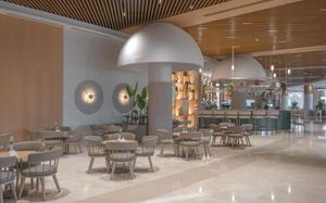 Сторона с номерами выходящая не на бассейны, имеет внизу вентиляцию, которая постоянно шумит и когда готовят идут запахи кухни.