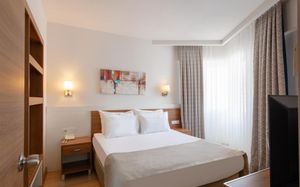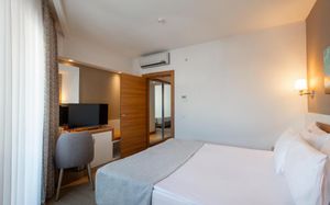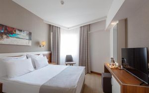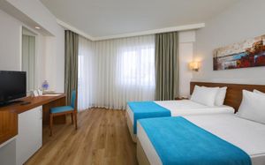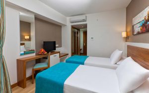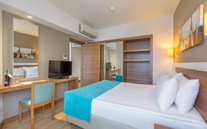 Номера отеля Lara Grand Park обставлены современной мебелью. Собственная ванная комната всех номеров укомплектована бесплатными туалетно-косметическими принадлежностями. В числе удобств сейф. Из всех номеров открывается красивый вид на город, сад или море.