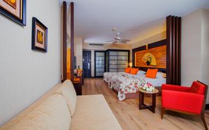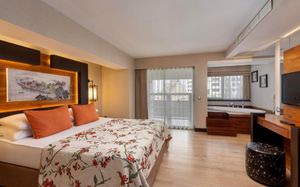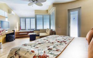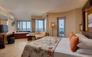 Комментарий к размещению: В отеле созданы все условия для комфортного пребывания людей с ограниченными возможностями: специально оборудованные номера, пандусы, лифт в бассейне (летом в открытом бассейне, зимой в крытом), удобный въезд на пляж, специальные кресла для передвижения по пляжу, прокат кресел-колясок (10 евро/день, по предварительному запросу).