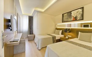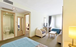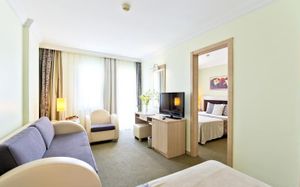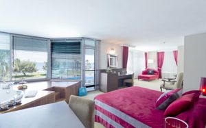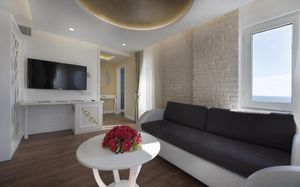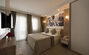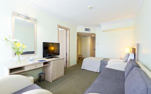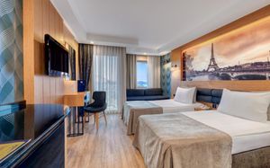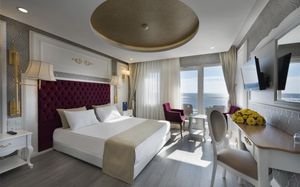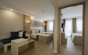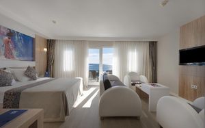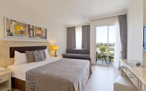 В номерах курортного отеля Sealife Family имеются кондиционеры и собственные балконы, с большинства из которых открывается вид на Средиземное море. Каждый номер оформлен в приглушенных тонах и обставлен современной мебелью. Среди современных удобств — телевизор со спутниковыми каналами.