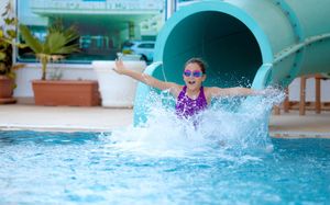 3 открытых бассейна с пресной водой, без подогрева 1 крытый бассейн с пресной водой, с подогревом, работает 01.11-31.03, площадь 79 кв.м 1 водная горка, без подогрева, работает по расписанию (примерно с 15 мая) Открытые бассейны и горки не работают в зимний сезон