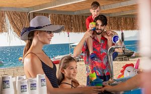 Пляж открыт с 1 мая по 31 октября. Подземный переход позволяет добраться до пляжа, соединенного с общественным пляжем. В распоряжении гостей теннисные корты, сауна, традиционная турецкая баня, а также детский клуб в специально отведенной зоне с профессиональной командой аниматоров.