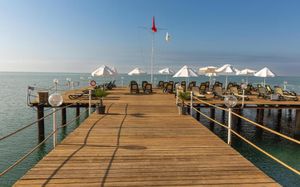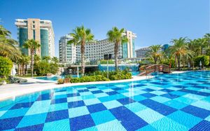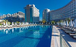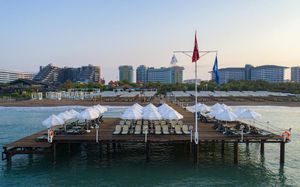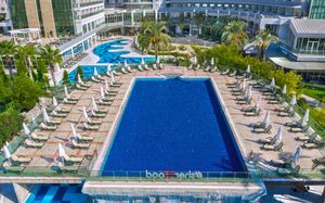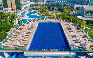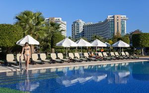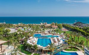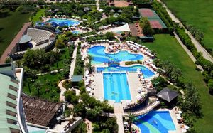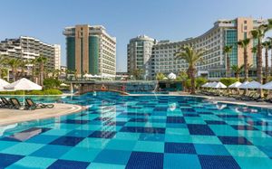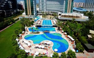 Отель расположен в Анталье, в районе Кунду, в 12 км от центра города Анталья, на берегу моря. Красивая зеленая территория, просторные номера, хороший сервис и развитая инфраструктура, включающая спа-центр и аквапарк.