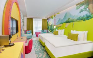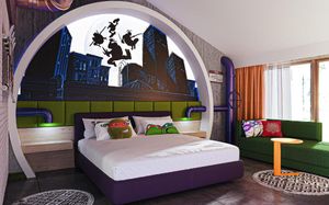 Номера оформлены в тематике мультсериалов «Губка Боб», «Щенячий патруль», «Черепашки-ниндзя», сериала «Звездный путь», "Дора". Данную тематику можно найти повсюду: от 238 номеров с яркой концепцией до спа-центра, частного фитнес-центра, турецкой бани и бассейна с особой тематикой - все стильно и со вкусом оформлено для комфорта, развлечений и душевного спокойствия.