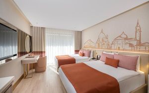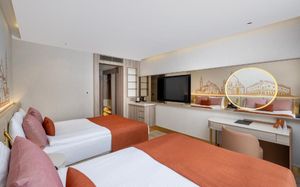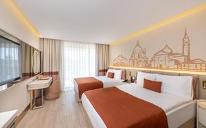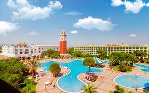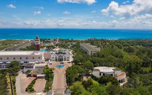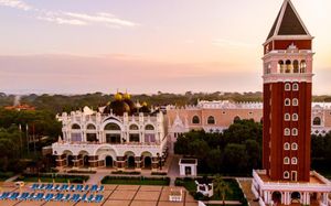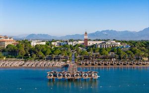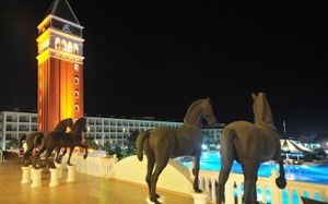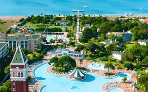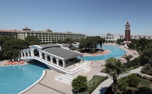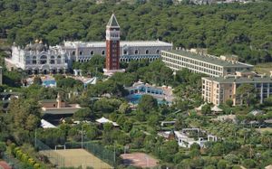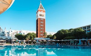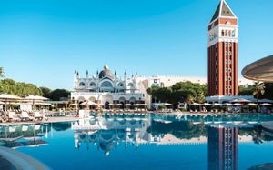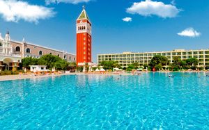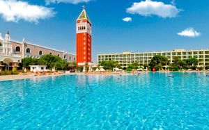 Пятизвездочный курортный отель Venezia Palace Deluxe, спроектированный в виде площади Сан-Марко в Венеции, занимает территорию в 100 000 кв.м. и находится в нескольких минутах ходьбы от собственного пляжа в районе Кунду, в Анталье. К услугам гостей огромный открытый бассейн, крытый бассейн, роскошный сад и просторный спа-центр.