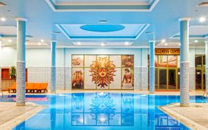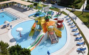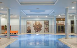 Открытый бассейн без подогрева, с пресной водой, площадь 3500 кв.м Крытый бассейн с пресной водой, площадь 170 кв.м (подогрев только в зимний период), часы работы 09:00-19:00 2 аквапарка (для взрослых и для детей). Часы работы 10:00-12:00 и 14:00-16:00. Аквапарк открыт с 01.04 по 31.10, работают в зависимости от погодных условий
