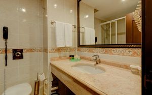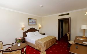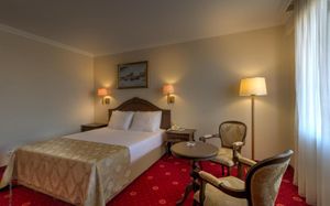 В числе удобств номеров отеля Venezia Palace централизованная система кондиционирования воздуха, ЖК-телевизор со спутниковыми каналами, мини-бар и сейф. С балкона открывается живописный вид. В собственной ванной комнате с ванной предоставляются бесплатные туалетно-косметические принадлежности и фен.