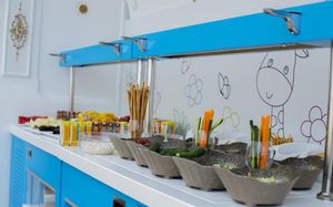Мини-клуб для детей в возрасте от 4 до 12 лет, часы работы 10:00-21:00 Примерное детское меню в ресторане: картофельное пюре, отварное мясо, курица, йогурты, молоко. Детское питание, фруктовое пюре - по запросу