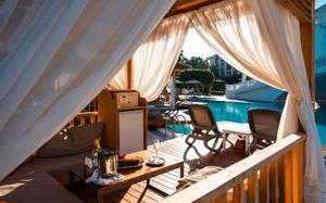 Бассейн 1 — открытый Бассейн 2 — открытый Бассейн 3 — крытый Бассейн 4 — открытый Фитнес Спа-лаундж/зона для релаксации Спа-процедуры Пилинг для тела Уход за телом Укладка Окрашивание волос Стрижка Педикюр Маникюр Уход за волосами Макияж Уход за лицом Косметические услуги Зонты от солнца Шезлонги/пляжные кресла Турецкая баня Гидромассажная ванна/джакузи Массаж Спа и оздоровительный центр Фитнес-центр Сауна