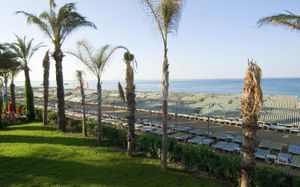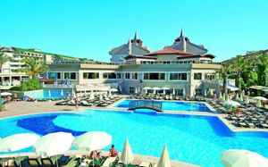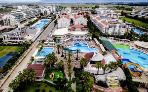 Курортный отель Aydinbey Famous Resort с обслуживанием «ультра все включено» расположен на берегу Средиземного моря. К услугам гостей частный пляж, отмеченный голубым флагом. На территории есть 3 открытых бассейна, крытый бассейн, водные горки и спа-центр.