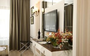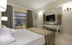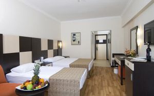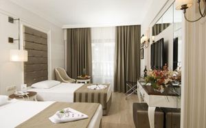 Светлые номера отеля Aydinbey со вкусом оформлены в теплых тонах. Все они оснащены телевизором, кондиционером и мини-баром.