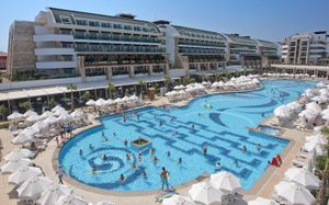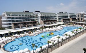 Отель расположен в 43 км от аэропорта, в районе Богазкент, на берегу моря. Рекомендуем для активного семейного отдыха.