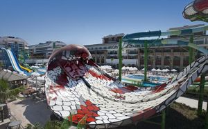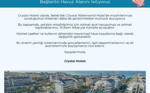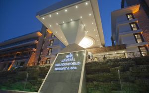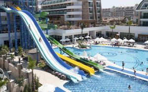 Курортный спа-отель Crystal Waterworld обрел свое название благодаря кристально чистым водам Средиземного моря. Он расположен на побережье и владеет собственным песчаным пляжем длиной 500 метров. В курортном отеле к услугам гостей 3 открытых бассейна, аквапарк с водными горками и спа-центр.