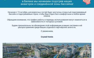 Отель оставляет за собой право изменить график работы, тип и оснащение бассейнов и аквапарка без предварительного уведомления