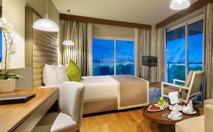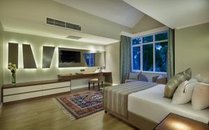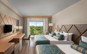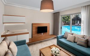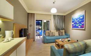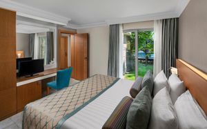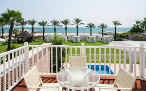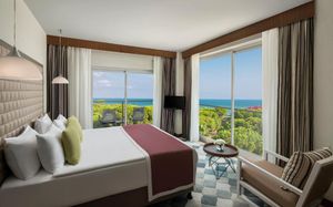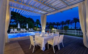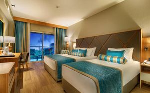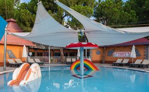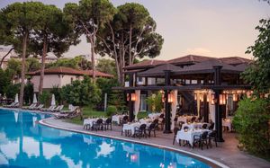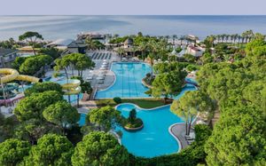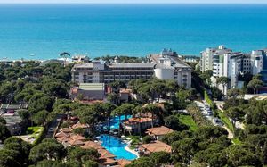 Отель расположен на самом берегу Средиземного моря, в окружении сосновых и эвкалиптовых деревьев, в регионе Белек. Здесь Вас ждет высокий уровень обслуживания, прекрасные номера на любой вкус, красивая территория. Отличный вариант для семейного отдыха с детьми - их ждет волшебное царство Pappy Kids, где дети могут принять участие в различных развлекательных и познавательных мероприятиях. В отеле есть русскоговорящий персонал. Wi-Fi - бесплатно.