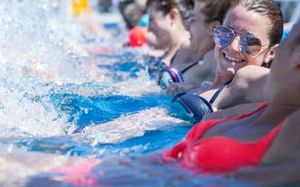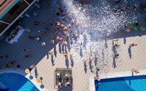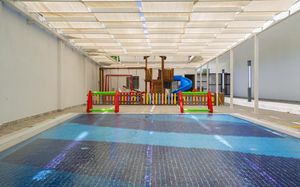 1 открытый бассейн с пресной водой (без подогрева), 1150 кв.м 1 крытый бассейн с пресной водой (подогрев в зимний сезон), 483 кв.м 3 водные горки, часы работы 10:00-12:00/14:00-16:00