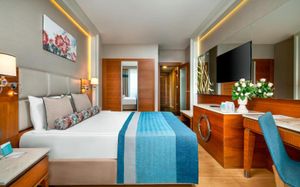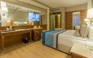 Курортный спа-отель Sensitive Premium расположен на берегу моря и отличается элегантным и стильным оформлением. Гости отеля могут посетить частный пляж и воспользоваться крытым и открытым бассейнами. При отеле функционируют оздоровительный и спа-центр, а также сауна, турецкая баня и аквапарк. Кроме того, в отеле работает бесплатный Wi-Fi.