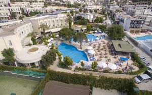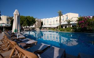 В этот отпуск в Бодруме это наш 3й отель, мы, посетили Мармарис, Фетхие и Олюдениз. Поэтому побывав в 8 отелях за отпуск, есть с чем сравнить. В данном отеле остановились на несколько дней проездом. Для полноценного отпуска ехать в этот отель я бы не советовала. Ниже напишу причины. Номерной фонд уставший, чистота тоже очень хромает. Садовника кажется вообще нет, потому что почти вся зелень, цветы просто в каком-то запустелом состоянии. У маленького бассейна возле пляжа вообще какой-то пустырь, даже травы толком нет. В целом везде чувствуется тотальная экономия. Пару примеров - 1) Холодильник с водой на зоне снек бара открывают только во время работы снек бара. В остальное время он заперт на замок! Основной бар у бассейна (где горки) работает до 23.00. То есть если вы захотели попить в 23.30 и вода закончилась у вас в номере, то ждите утра! Или купите сами в магазине за отелем. Обеспечение водой 24/7 в отеле "все включено", пусть даже бюджетного уровня должно быть by defalt, тем более в жару. 2)Примерно в 23.05 у основного бара освещение выключают, все идите все спать! По мне, так быть не должно. Люди еще сидят, кто-то допивает напитки, кто-то общается. Потом все сидят в полном мраке. Отель позиционирует себя как семейный-при этом для детей особо ничего нет! Детский уголок, площадка - все было в унылом состоянии, ребенок даже не подходил туда. Самое обидное -это мини диско. У отеля всего 1 аниматор мужчина (на все активности) - он ведет аква аэробику, вечерние шоу, детское мини диско, потом ночью еще вывозит туристов в клубы... что сказать мини диско велось для галочки - 3, 4 песенки ито не до конца. Когда как в других отелях этому уделяется 25-30 минут. Тут я засекала - 10 минут!!! при этом постоянно обрывали песни на середине. Аниматор говорил помощнику за ноутбуком - hadi, kapat (давай, вырубай). Хотя детей было много и все действительно ждали вечернего мини диско... такое отношение конечно не радует. Поэтому для семей с детьми не советую.