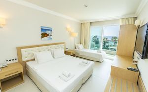 1. Бассейн ледяной. В нем невозможно купаться. 2. Еда супер однообразная и не очень вкусная. Часто приходилось кушать вне отеля, поскольку еда не очень хорошего качества. Плюс разнообразие еды очень сильно отличается от фото, которые размещены на букинге. 3. Номера к заезду не готовы. Например, у нас стояла Лейка в душе с плесенью (в букинге уже был отзыв об этом и наверное целесообразно было бы везде их заменить, но увы и ах), также не работал свет в ванной комнате. Фактически первый день после заезда это был квест с беганьем на ресепшен с просьбой устранить те или иные недостатки. В целом ремонт в номерах старый, все с какими то недостатками (дырки в стенах, плохо закреплены детали к стене и т.д.). 4. Пляж при отеле вообще очень плохой. Береговая линия супер маленькая и ее очень редко убирают (за неделю проживания в отеле ее убрали один раз и то, когда все люди с нашего отеля шли на соседний пляж другого пятизвездочного отеля, где нам не особо были рады и мне кажется этот отель заставил наш отель убрать береговую линию). На пляже отеля не купались ни разу. 5. Техника в номерах старая. Кондиционер настолько шумный, что с ним невозможно спать (несмотря на то, что мы включали самый тихий режим). За три дня до отъезда в наших номерах кондиционер вовсе отключили (мы бронировали три номера в этом отеле). В другом номере у нас не работал фен. 6. При заселении в одном из номеров не было полотенец, опять же пришлось бегать на ресепшен и просить что бы их принесли. 7. В отеле отсутствуют двухместные большие кровати, несмотря на указание о их наличии в букинге. По факту вам совместят две одноместные кровати, что на самом деле не очень хорошо для отеля, который гордо указывает 4 звезды. 8. Вайфай в отеле ловит только, если ваши номера расположены относительно близко к ресепшену, в остальных случаях его надо ловить в коридорах или на улице. Интернет часто пропадает и плохого качества.