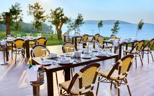 Рестораны a la carte/шведский стол:Club Azure Mylos Sea Food & Snack 12:00 - 16:00/19:00 - 21:30 (14.04.2026 -30.10.2026). Платно Mardin 19:00 - 21:30 (14.04.2026 -30.10.2026). Платно Sakura Sushi & Teppanyaki 19:00 - 21:30 (01.05.2026 -01.10.2026). Платно Pulcinella Restaurant 08:00 – 11:00/12:00 – 16:00/19:00 - 21:30 (01.05.2026 -01.10.2026). Платно При проживании от 5 ночей предлагается один бесплатный ужин по меню (в Mardin, Sakura или Pulcinella) Необходима предварительная резервация столика