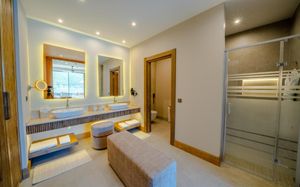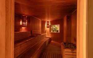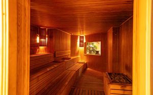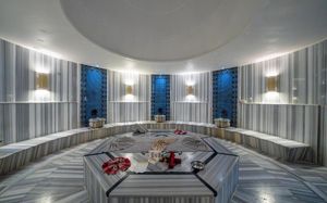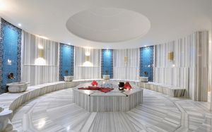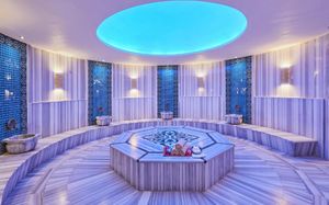 Открытый бассейн Раздевалка со шкафчиками в фитнес-центре / спа-салоне Занятия по йоге Фитнес Ванночка для ног Спа-лаундж/зона для релаксации Парная Спа-процедуры Уход за волосами Косметические услуги Общественные бани Турецкая баня Массаж Спа и оздоровительный центр Фитнес-центр Сауна