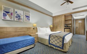 Детская коляска Детский клуб Семейные номера Няня / услуги по уходу за детьми Буфет, подходящий для детей Детское меню Детская площадка на улице Игровая зона в помещении Настольные игры и/или пазлы Аквапарк Оборудование для занятия водными видами спорта (на территории) Телевизор с плоским экраном Детская игровая площадка Игровая комната Телевизор Дартс Настольный теннис
