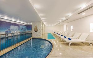 Бассейн 1 — крытый Бассейн 2 — открытый Раздевалка со шкафчиками в фитнес-центре / спа-салоне Фитнес Массаж всего тела Массаж головы Массаж ног Массаж шеи Массаж спины Пакеты услуг спа/велнесс Парная Спа-процедуры Пилинг для тела Косметические услуги Зонты от солнца Шезлонги/пляжные кресла Турецкая баня Массаж Спа и оздоровительный центр Фитнес-центр Сауна