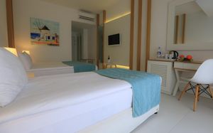 Курортный отель Labranda TMT Bodrum с собственным пляжем, открытым бассейном, сауной и турецкой баней расположен рядом с морским побережьем. Из номеров, оборудованных кондиционерами, открывается вид на море или сад.