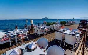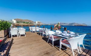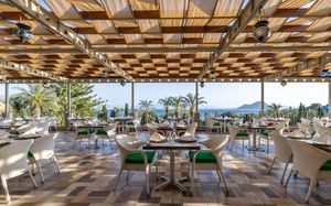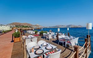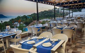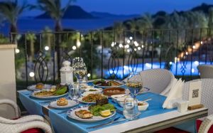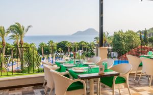 Рестораны a la carte/шведский стол:Oceania: рыбный ресторан (01.06 – 01.10) Sultan: ресторан турецкой кухни (01.06 – 01.10) La Perla: итальянская кухня (02.05 – 20.10) Ela Lounge: международная кухня (01.06 – 01.10) Часы работы 19:30-21:30? в определённые дни закрыты. Необходима предварительная резервация Возможно одно бесплатное посещение ресторанов (при проживании от 5 ночей)
