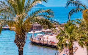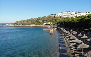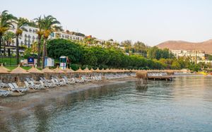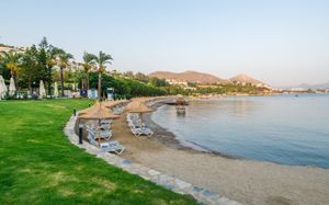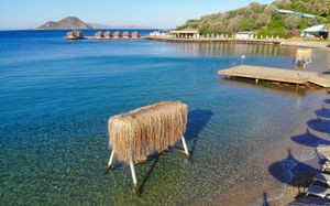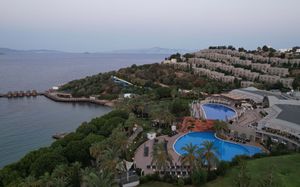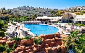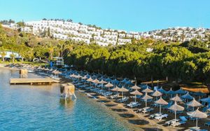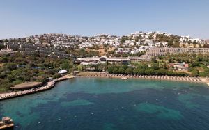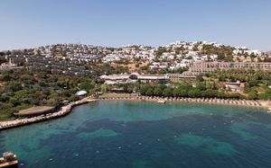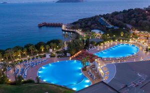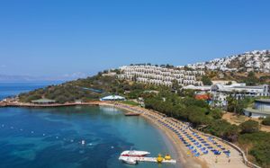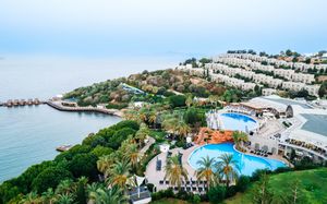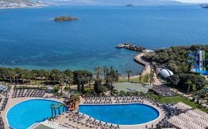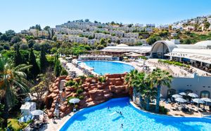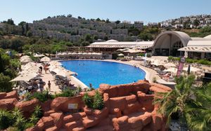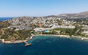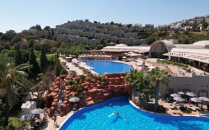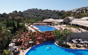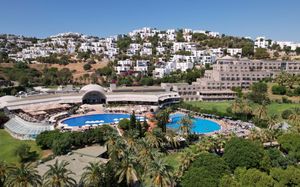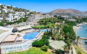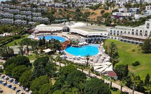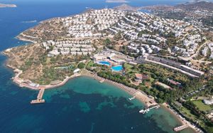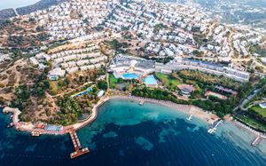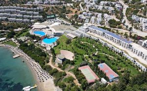 Отель расположен на берегу моря, в 5 км от поселка Тургутрейс, в 20 км от центра города Бодрум. Большая красивая территория, отличный сервис. Отель ориентирован на активный семейный отдых.