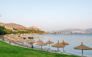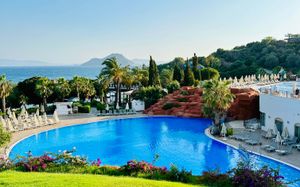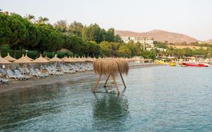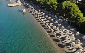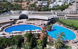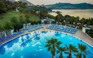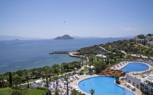 В этом отеле, расположенном у берега Эгейского моря, гостей ожидают 3 открытых и 2 крытых бассейна, а также частный пляж длиной в километр. Имеются деревянная терраса с 2 беседками, спа-центр с турецкой баней и бесплатный Wi-Fi на всей территории отеля.