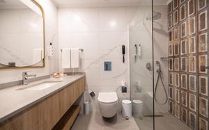 Туалетная бумага Полотенца Биде Ванна или душ Тапочки Туалет Бесплатные туалетно-косметические принадлежности Фен Душ