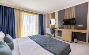 Во всех номерах курортного отеля Yasmin Bodrum установлены окна от пола до потолка и предоставляются кондиционер, спутниковое телевидение и мини-бар. В ванной комнате вы найдете бесплатные туалетно-косметические принадлежности и фен.