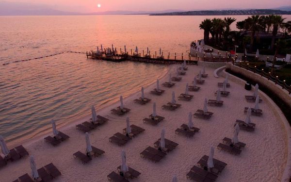 Reges, a Luxury Collection Resort & Spa, Cesme — это отель в городе Чешме, в 800 м от такой достопримечательности, как Пляж Боялык. Среди удобств — сезонный открытый бассейн, фитнес-центр, сад и бесплатная частная парковка. К услугам гостей общий лаундж, терраса и бар. Гости могут воспользоваться оздоровительным и спа-центром с сауной, гидромассажной ванной и хаммамом, а также частным пляжем. Гостям Reges, a Luxury Collection Resort & Spa, Cesme предоставляется завтрак «шведский стол» и завтрак по меню. При Reges, a Luxury Collection Resort & Spa, Cesme работает ресторан, где подают блюда итальянской кухни, блюда средиземноморской кухни и блюда международной кухни. По запросу для гостей приготовят вегетарианские, веганские и безглютеновые блюда. К услугам гостей Reges, a Luxury Collection Resort & Spa, Cesme — детская игровая площадка. Сотрудники стойки регистрации, которые говорят на немецком, на английском и на турецком, предоставят гостям информацию о регионе. Reges, a Luxury Collection Resort & Spa, Cesme располагается на расстоянии 2 км и 2,5 км соответственно от таких достопримечательностей, как Замок Чешме и Порт Чешме.
