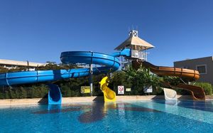 4 открытых бассейна (без подогрева) 1 крытый бассейн с подогревом 2 водные горки для взрослых и 3 для детей, часы работы 10:30-12:30 /15:00-17:00