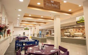 Расписание работы основного ресторана:Olympos Restaurant: завтрак 07:00 – 10:30, поздний завтрак 10:30 – 11:00, ужин 18:00 – 21:00, поздний ужин 23:00 – 00:00. Детский буфет 18:00 – 21:00 Pool Open Buffet Restaurant: обед 12:00 – 14:30, закуски 11:30 – 16:30 Chill Out Snack: закуски на пляже 10:30 – 16:30 Ice Cream Corner: мороженое 15:00 – 17:00
