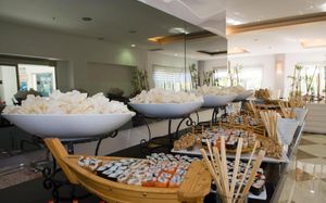 Рестораны a la carte/шведский стол:Taverna Restaurant 18:00 - 21:30 Spıce A la Carte Restaurant (дальневосточный) 18:00 - 21:30 Возможно одно бесплатное посещение одного из ресторанов Необходима предварительная резервация Green & Grill Restaurant (платно) 18:00 - 21:30