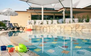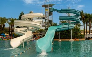 2 открытых бассейна (без подогрева), 1900 и 480 кв.м 1 крытый бассейн (подогрев в мае и октябре) 2 водные горки для взрослых и 3 горки для детей (без подогрева), часы работы 10:30-12:30/15:00-17:00
