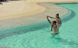 Семейный плавательный бассейн (пресная вода) 420 кв.м Семейный бассейн с пологим входом (морская вода), с подогревом, 727 кв.м Плавательный бассейн в Смешанной зоне (пресная вода) 1431 кв.м Бассейн для детей в Смешанной зоне (пресная вода) , с подогревом, 33 кв.м Плавательный бассейн для взрослых (пресная вода) 902 кв.м Крытый плавательный бассейн (пресная вода) 186 кв.м Крытый бассейн для детей (пресная вода) 17 кв.м