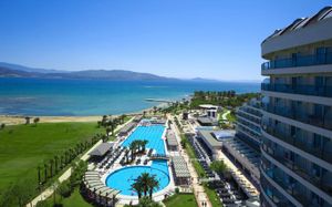 Этому 5-звездочному отелю с проживанием по системе «все включено» принадлежит часть пляжа Веноза. К услугам гостей спа-центр с турецкой баней и тренажерным залом, открытый бассейн и номера с видом на Эгейское море.