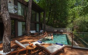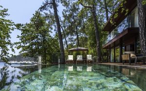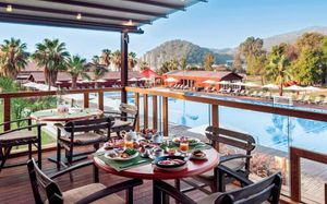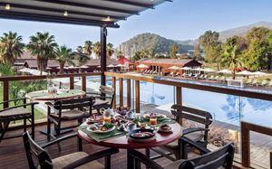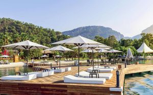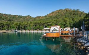 Восхитительное море, изумительный горный пейзаж и спокойный отдых среди соснового леса ждет вас в Rixos Premium Göcek. Отель расположен в местечке Гёчек, в 28 км от Фетхие, на берегу моря. Пляж расположен в отдельной бухте, в 5 минутах езды на катере.