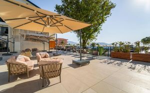 Замечательное месторасположение - первая линия моря. Перед отелем променад, где приятно прогуляться вечером.