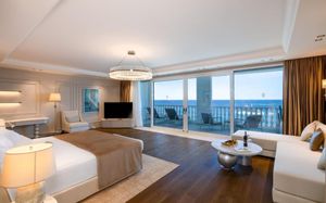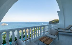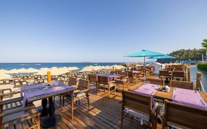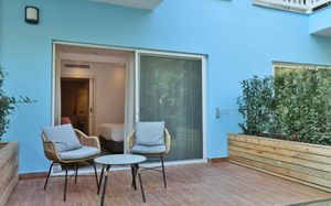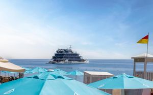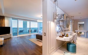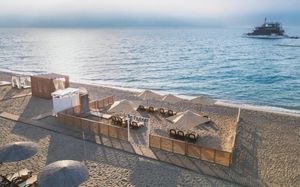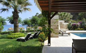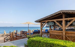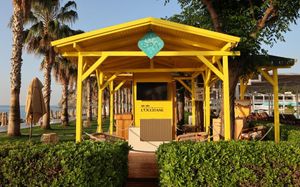 Лифт в бассейн для гостей с ограниченными физическими возможностями, специальные шезлонги. Пандус для выхода к морю.